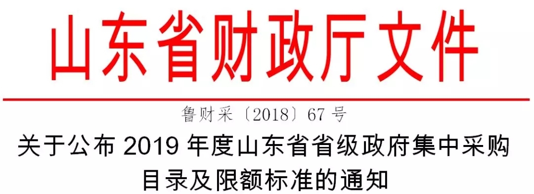 近日,山东省财政厅发布《关于公布2019年度山东省省级政府集中采购目录及限额标准的通知》。