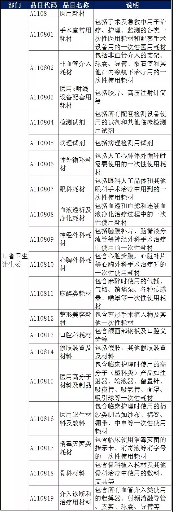 医疗设备和耗材被纳入部门集中采购目录。