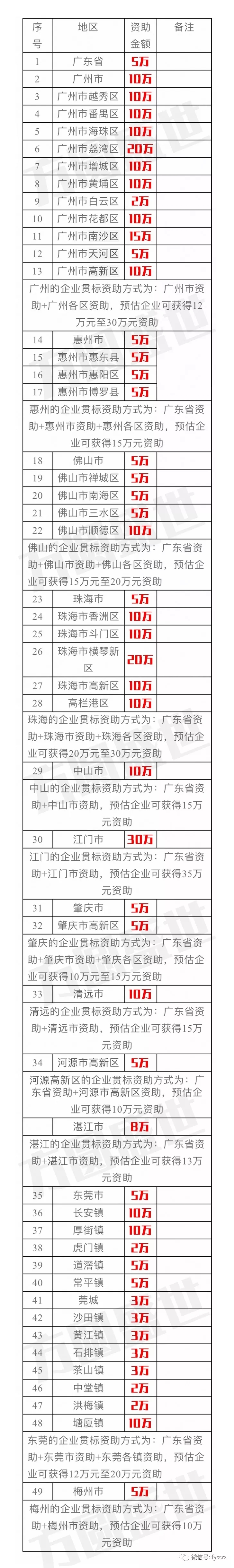 7、深圳市龙岗区对通过国家贯标认证的企业每家10万元,限定10家待通知。