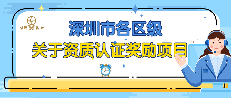 ► 我们不难在平常的新闻中发现相关部门单位开始鼓励企业进行资质认定,必要的资质认定使企业自身的发展亮点频频涌现,同时也可让该行业整体的发展进行一个质的飞跃。接下来,方圆小编为各企业整理了有关深圳市各区级关于资质认证奖励项目清单,具体内容如下:
