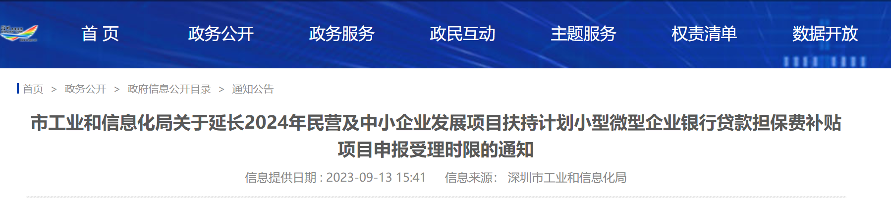 2024年民营及中小企业发展项目扶持计划小型微型企业银行贷款担保费补贴项目申报工作已启动。根据《市工业和信息化局关于发布2024年民营及中小企业发展项目扶持计划小型微型企业银行贷款担保费补贴项目申报指南的通知》,网络填报时间已于2023年9月8日17时截止。受上周暴雨天气影响,罗湖区、龙岗区、盐田区等区域部分道路封闭,为方便申报单位及时办理申报事项,现将网络填报受理时间延长至9月14日18时,书面材料受理时间延长至9月21日(工作时间)。网络填报受理截止后,不再受理新提交项目的申请,网络填报截止前已提交后又被退回修改的,可继续提交在线预审,但提交时间最迟不能超过书面材料受理的截止时间。截止9月21日未提交书面材料的,视为放弃申报。