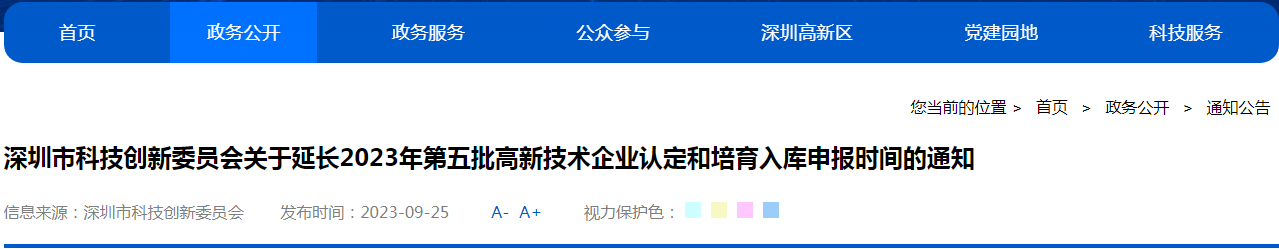为强化企业科技创新主体地位,营造良好的营商环境,经研究决定,2023年第五批高新技术企业认定和培育入库申报企业提交截止时间由9月28日20:00延长至10月15日20:00。