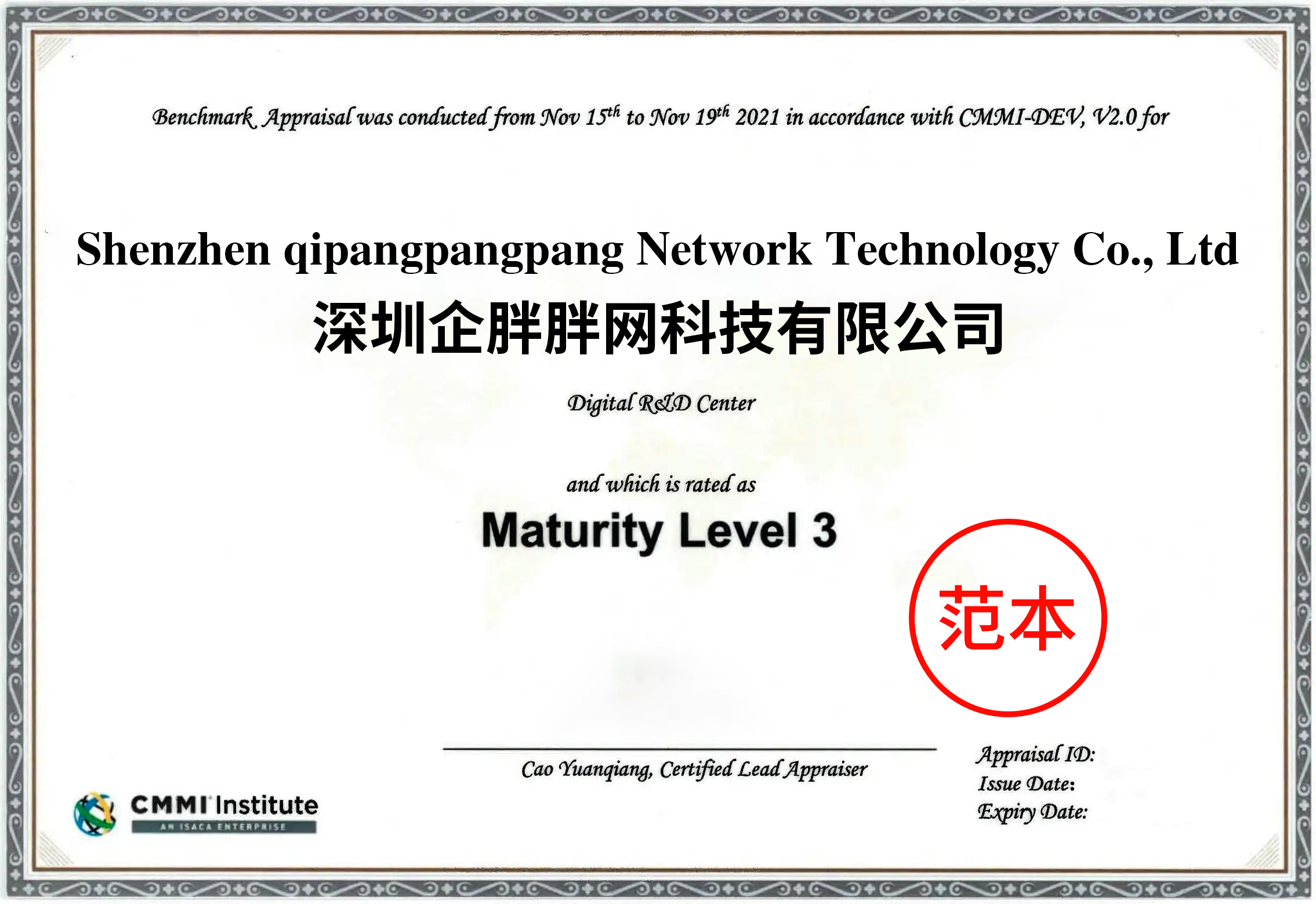CMMI-3(已定义级)。这个级别已经将软件管理和工程两方面的过程文档化、标准化,并综合成该组织的标准软件过程。所有项目均使用经批准、剪裁的标准软件过程来开发和维护软件,软件产品的生产在整个软件过程是可见的。