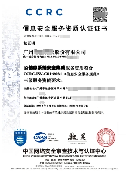 (三)、CCRC信息安全服务资质三级