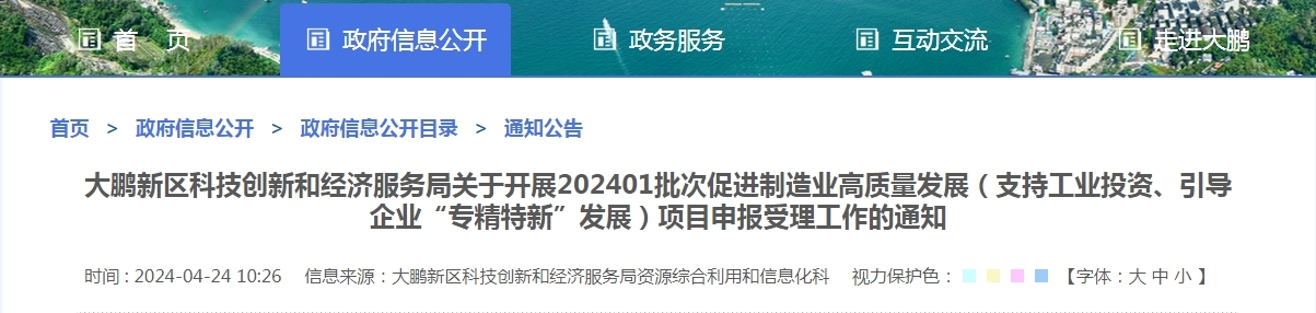 大鹏区-支持工业投资项目