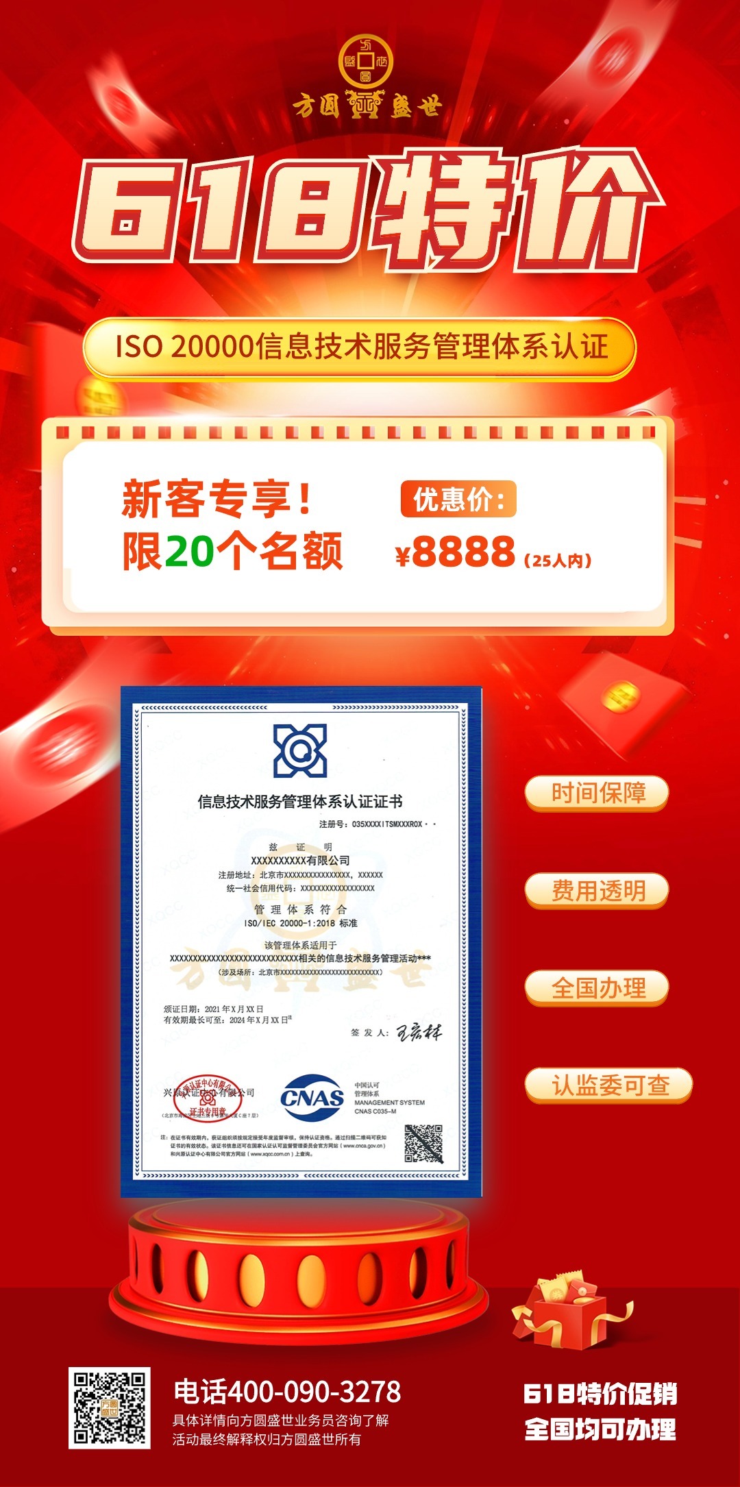 ISO 20000信息技术服务管理体系认证 特惠价8888元/件(25人内)
