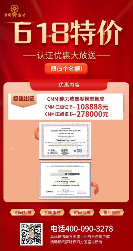 CMMI 三级证书 108888元/件
