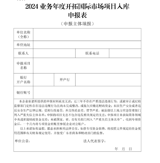 (一)《2024业务年度开拓国际市场项目入库申报表》