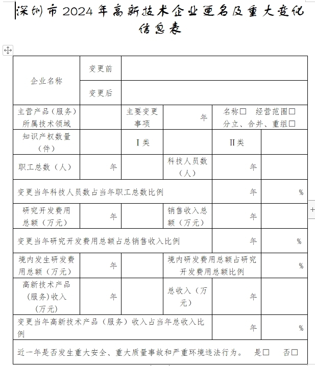 8.深圳市2024年高新技术企业更名及重大变化信息表(格式见附件1);