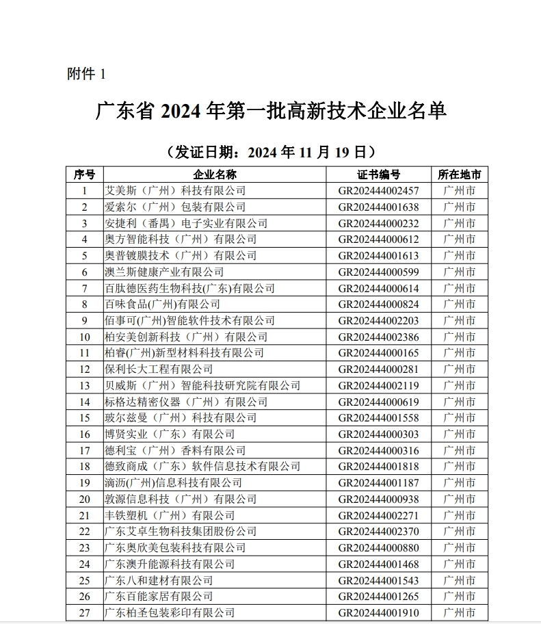 根据《科技部 财政部 国家税务总局关于修订印发〈高新技术企业认定管理办法〉的通知》(国科发火〔2016〕32号)和《科技部 财政部 国家税务总局关于修订印发〈高新技术企业认定管理工作指引〉的通知》(国科发火〔2016〕195号)有关规定,经企业申报,广东省高新技术企业认定管理工作领导小组办公室组织认定,并报全国高新技术企业认定管理工作领导小组办公室备案,2024年第一批2995家企业被认定为高新技术企业(名单见附件1)。请各有关单位做好高新技术企业证书发放工作,领取证书联系电话详见附件2。