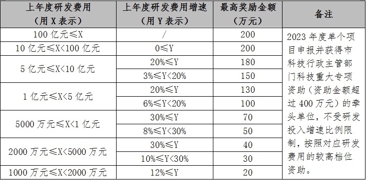 根据2023年度研发统计年报的研发费用、增速情况数据、自主创新情况给予综合考核,并根据考核结果分档次给予相应资助。本资助计划资助金额受区科技资金年度总额控制,资助标准如下: