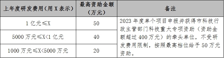 对2023年度新入库,且研发费用1000万元以上(含本数)的企业,按下表予以资助。对新纳入研发统计核算的企业,按照其上一年度扣除委托外部研究开发费用,每年最高资助50万元。