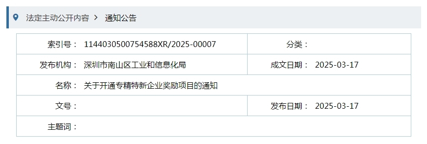 2025年南山区促进产业高质量发展专项资金——区工业和信息化局分项资金-专精特新企业奖励项目现已开通受理。现将有关事项通知如下: